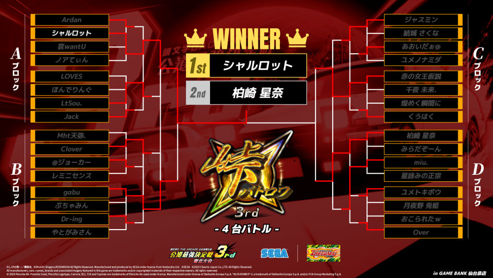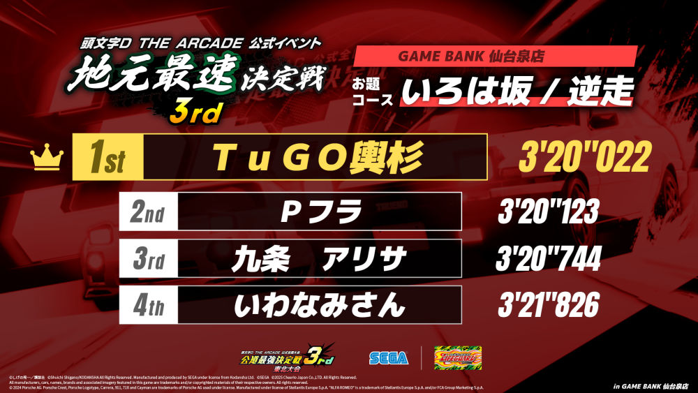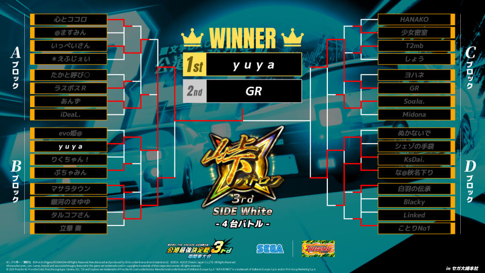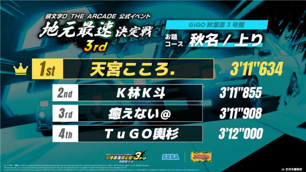 『公道最強決定戦3rd』は、『頭文字D THE ARCADE』の公式全国大会です。